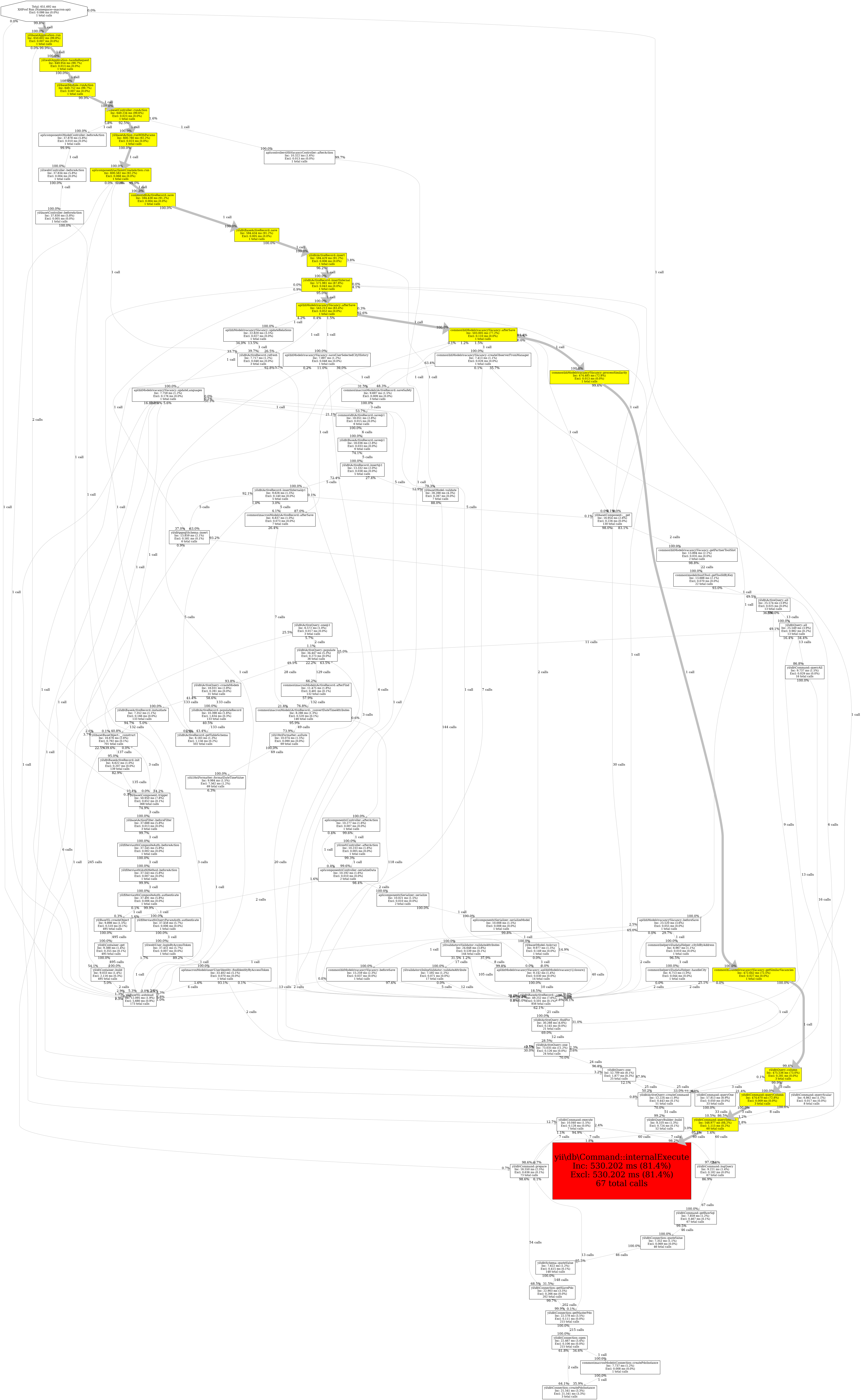 | yii\db\Command::internalExecute | 67 | 0.1% | 530,202 | 81.4% | 530,202 | 81.4% | 64,920 | 0.8% | 64,920 | 0.8% | 0 | 0.0% | 0 | 0.0% |