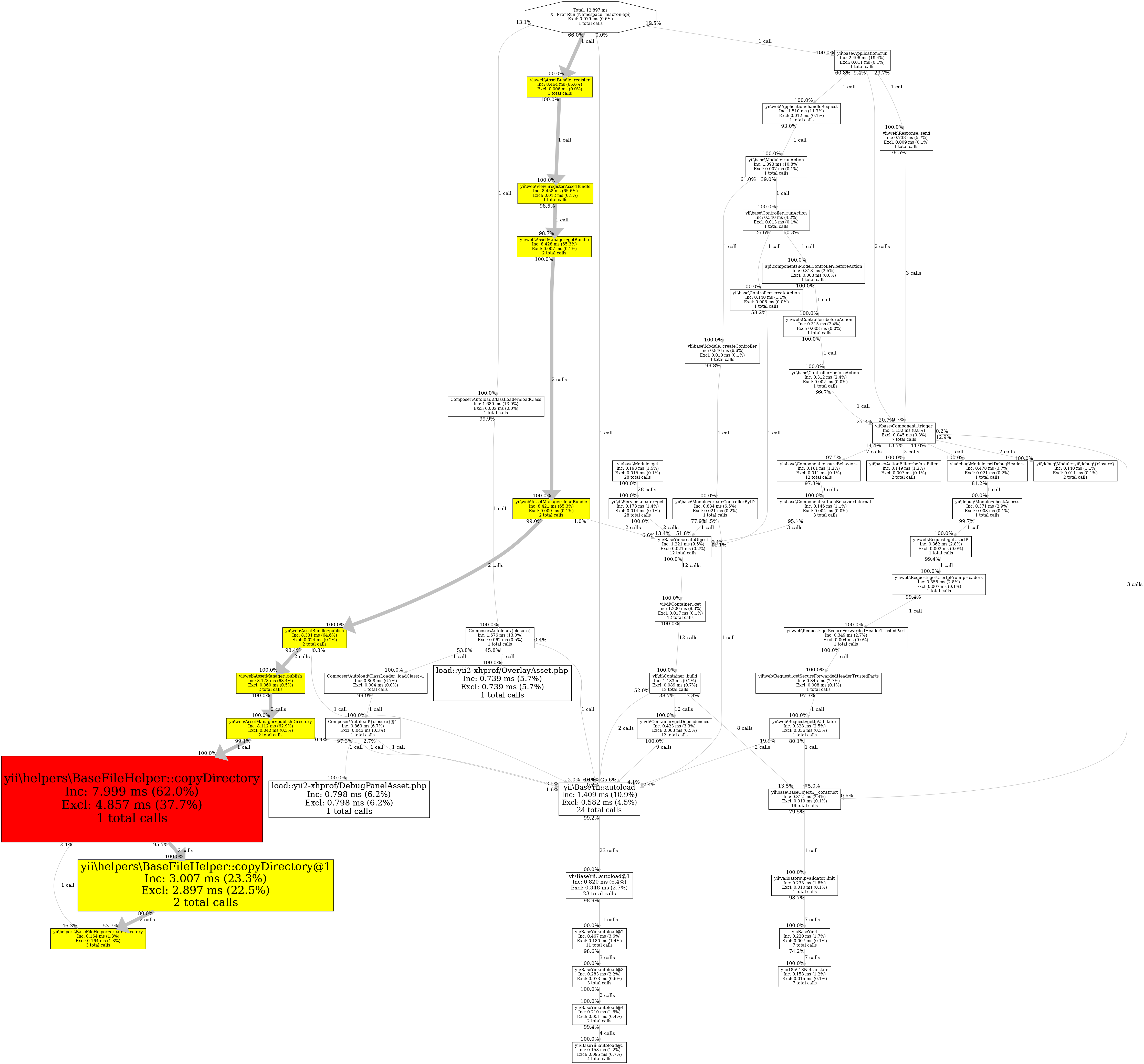 yii\helpers\BaseFileHelper::copyDirectory 1 0.1% 7,999 62.0% 4,857 37.7% 7,080 1.6% 896 0.2% 0 0.0% 0 0.0%